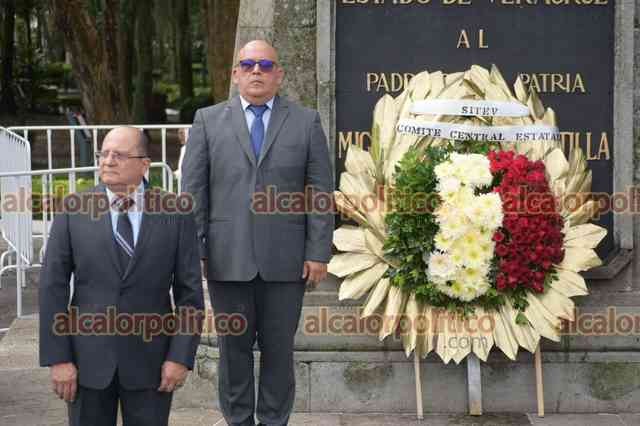 Xalapa, Ver., 26 de septiembre de 2023.- El secretario general del SITEV, Alberto Yépez Alfonso, encabezó guardia de honor a Miguel Hidalgo y Costilla.