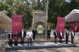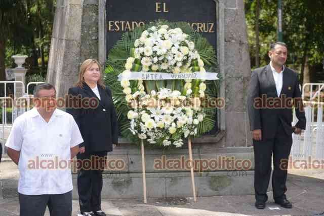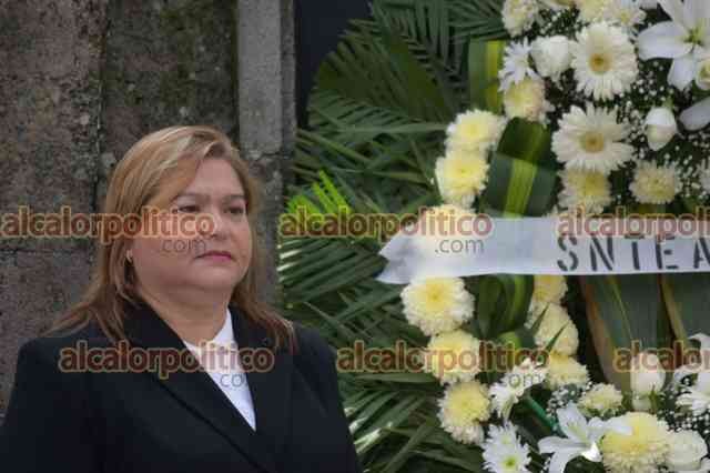 Xalapa, Ver., 26 de septiembre de 2023.- La secretaria general del Sindicato Nacional de Trabajadores de la Educación para Adultos (SNTEA), María del Rosario Sánchez López, comité sindical y docentes agremiados rindieron guardia de honor a Miguel Hidalgo en el 213 aniversario del inicio de la Independencia.