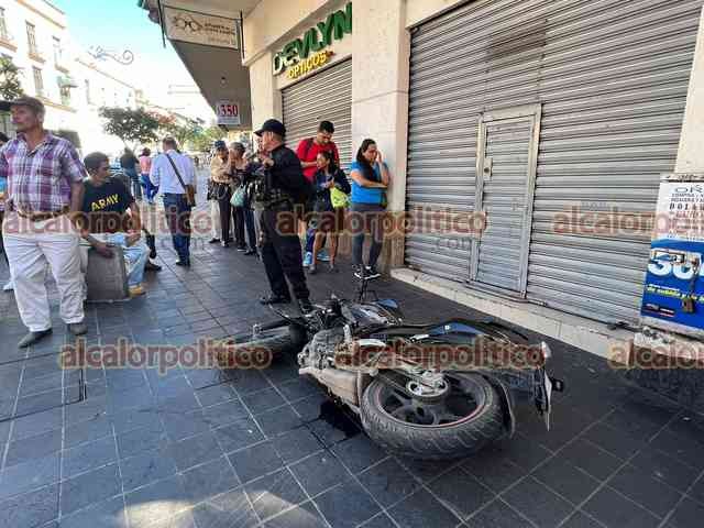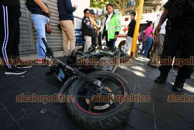Xalapa, Ver., 28 de septiembre de 2023.- En la calle Enríquez esquina Dr. Lucio, taxi XL-7112 impactó a motociclista que terminó sobre la banqueta, cerca de donde hacen fila pensionados que acuden a la sucursal del Banbienestar. No se reportaron lesionados.