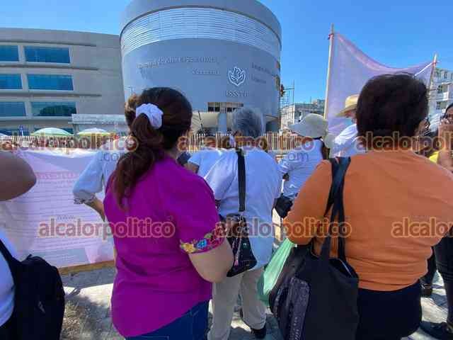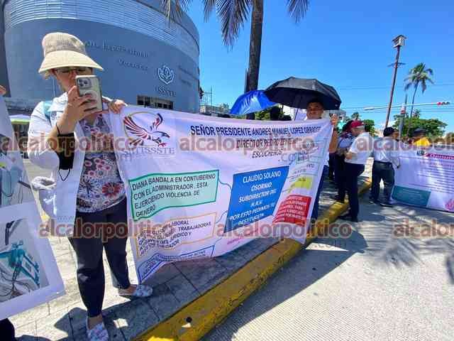 Veracruz, Ver., 28 de septiembre.- Trabajadores del ISSSTE bloquearon la avenida Díaz Mirón, frente al centro de salud; denuncian persecución sindical por parte de las autoridades. Como los derechohabientes, también piden destitución de la directora de la institución.