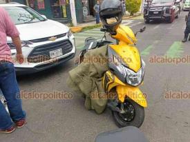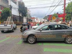 Xalapa, Ver., 28 de septiembre de 2023.- Dos adultos mayores que circulaban en motocicleta, resultaron lesionados en accidente sobre la calle Herón Proal, esquina Francisco Moreno; fueron trasladados a hospital para su atención médica.
