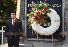 Xalapa, Ver., 29 de septiembre de 2023.- El encargado de la Oficina de Gobierno, Giovanni Canela, encabezó guardia de honor al Padre de la Patria, Miguel Hidalgo, en el parque de Los Berros.