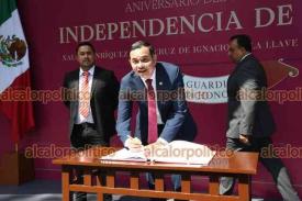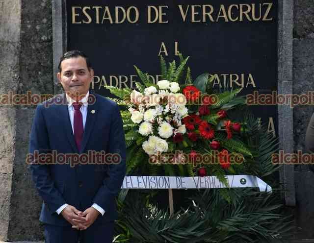 Xalapa, Ver., 27 de septiembre de 2023.- Acompañado por su equipo de trabajo, el director general de RTV, Víctor Hugo Cisneros, montó guardia de honor en el monumento a Miguel Hidalgo y Costilla, en Los Berros.
