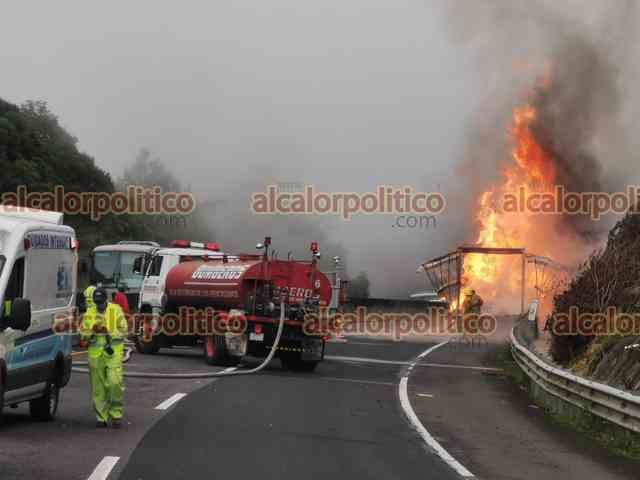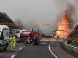Banderilla, Ver., 29 de septiembre de 2023.- Se incendia un camión de carga en el libramiento de Xalapa, en el tramo de Banderilla-Miradores; Bomberos de la estación Norte se encuentran sofocando el fuego que consumió totalmente la unidad.