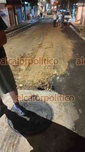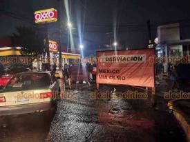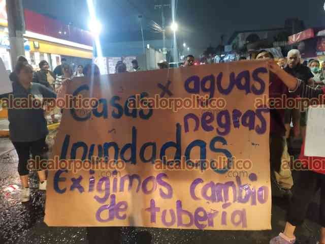 Xalapa, Ver., 29 de septiembre de 2023.- Vecinos protestaron la tarde-noche de este viernes, en la calle El Olmo de la colonia El Olmo, por Las Trancas, para denunciar que sus viviendas se inundaron a causa de una mala obra por CMAS.