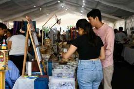 Xalapa, Ver., 1 de octubre de 2023.- Transeúntes disfrutan del último día de la Expo-Venta artesanal “Mi querido Veracruz”, en el parque Juárez.
