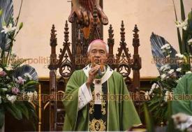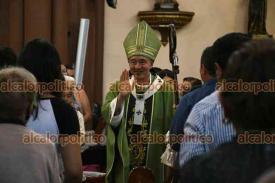 Xalapa, Ver., 1 de octubre de 2023.- El arzobispo de Xalapa, Jorge Carlos Patrón Wong, ofició la misa dominical en la Catedral metropolitana.