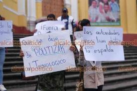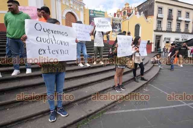 Xalapa, Ver., 2 de octubre de 2023.- Estudiantes del Tecnológico de Zongolica se manifestaron en la Plaza Lerdo para exigir auditoría a la gestión del director Pompeyo Quechulpa Pérez, a quien señalan de malos manejos financieros.