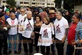 Ciudad de México, 2 de octubre de 2023.- Estudiantes, sobrevivientes de la matanza de Tlatelolco y ciudadanos participaron en la marcha en el 55 aniversario del crimen de Estado en 1968, partiendo de la Plaza de las Tres Culturas al Zócalo.