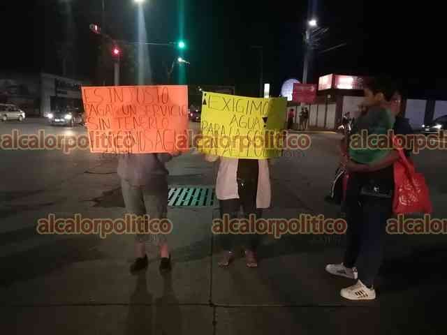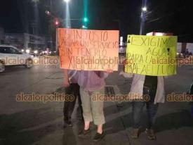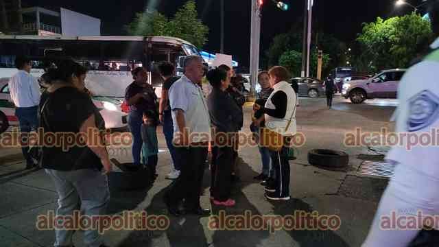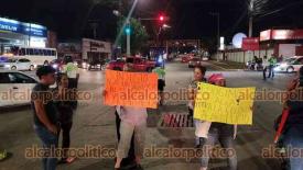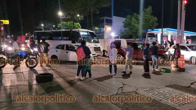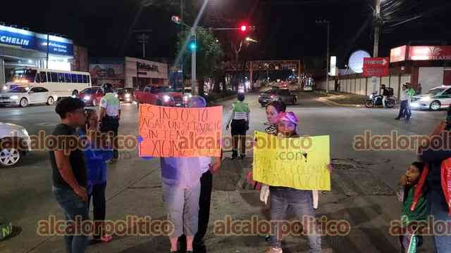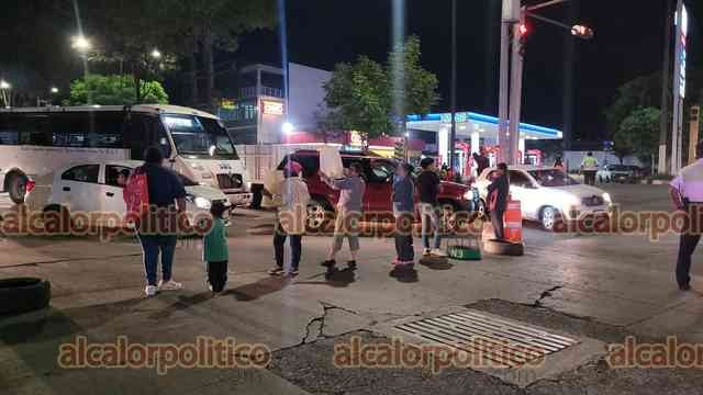 Xalapa, Ver., 3 de octubre de 2023.- La noche de este martes, vecinos de la calle Félix Licona bloquean la avenida Lázaro Cárdenas, a la altura de Plaza Urban, para reclamar que llevan más de una semana sin agua.