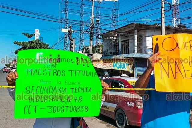 Veracruz, Ver., 4 de octubre de 2023.- Padres de alumnos de la Escuela Secundaria Técnica Industrial 78 bloquearon la carretera federal Xalapa-Veracruz, a la altura de la localidad de Tejería, para exigir docentes. Amagan con mantener protesta si autoridades no resuelven carencia.