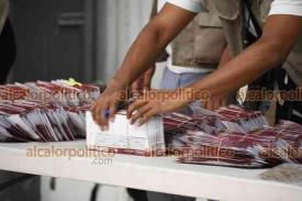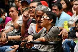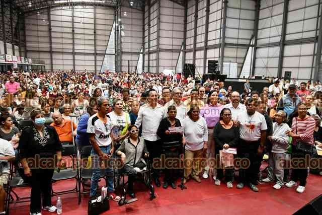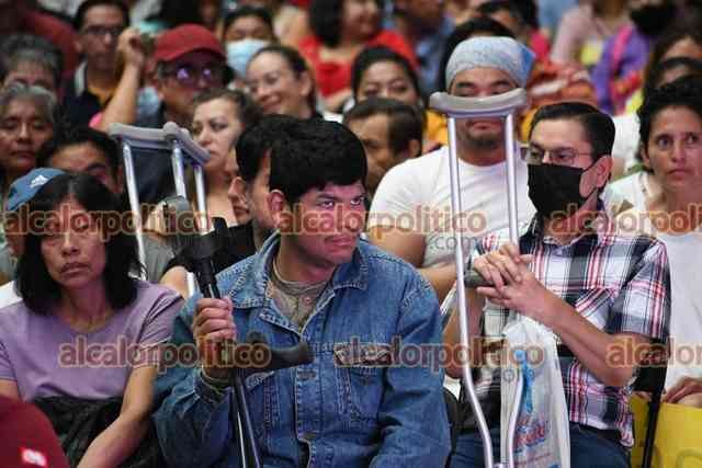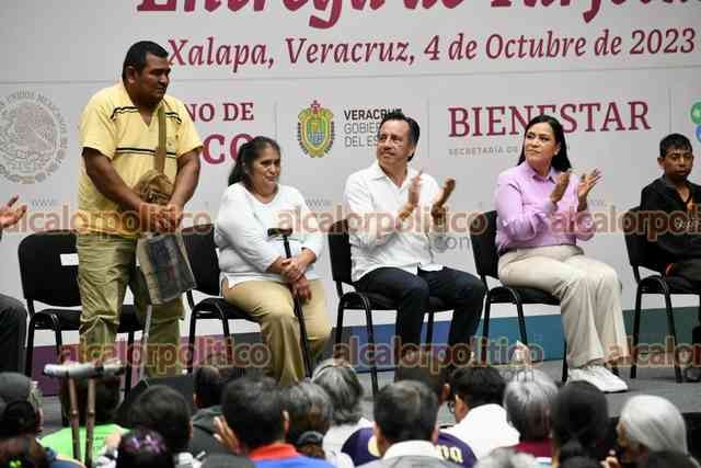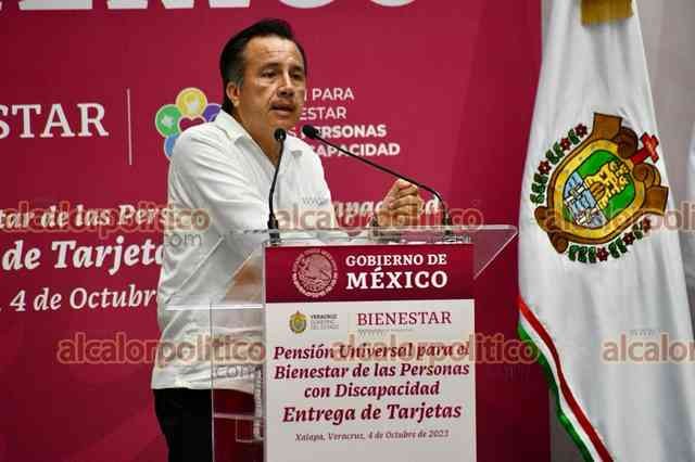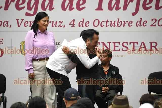 Xalapa, Ver., 4 de octubre de 2023.- La secretaria del Bienestar, Adriana Montiel Reyes y el gobernador Cuitláhuac García entregaron tarjetas del Banco del Bienestar a personas con discapacidad, en el Complejo Omega.