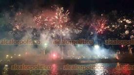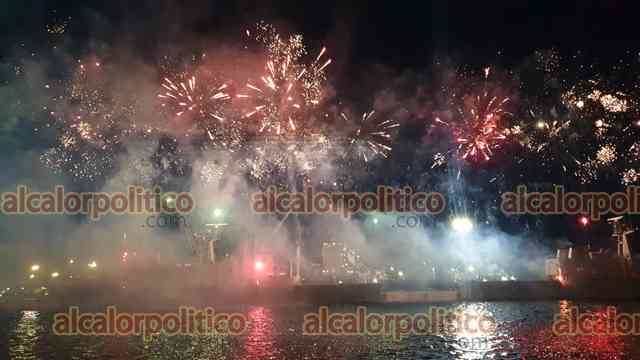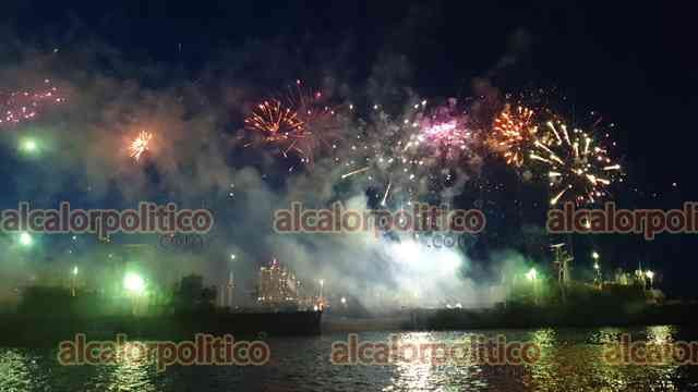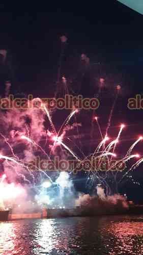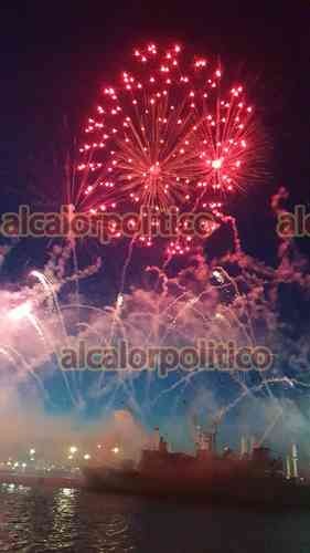 Veracruz, Ver., 4 de octubre de 2023.- Con un espectáculo piromusical concluyó la celebración de los 202 años de la Armada de México. Fuegos artificiales se lanzaron desde el buque ARM Guanajuato, acompañados de música; espectadores disfrutaron de aproximadamente 10 minutos del espectáculo.