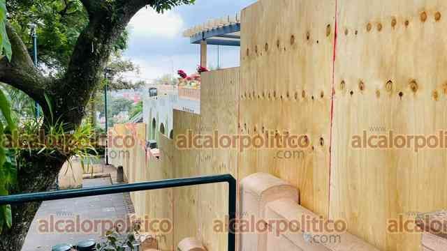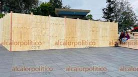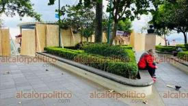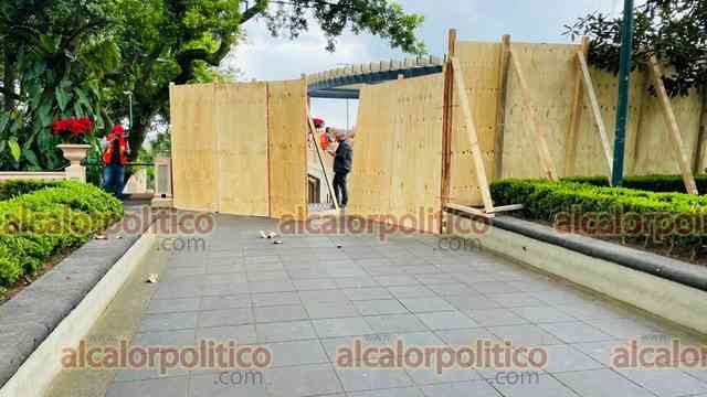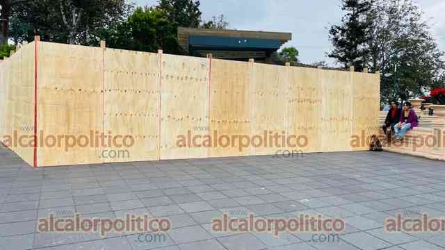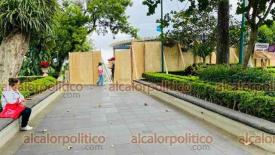 Xalapa, Ver., 27 de noviembre del 2023.- Por remodelación del Ágora de la Ciudad, fueron colocados tablones en el mirador del parque Juárez. Se prevé que la obra dure 5 meses.
