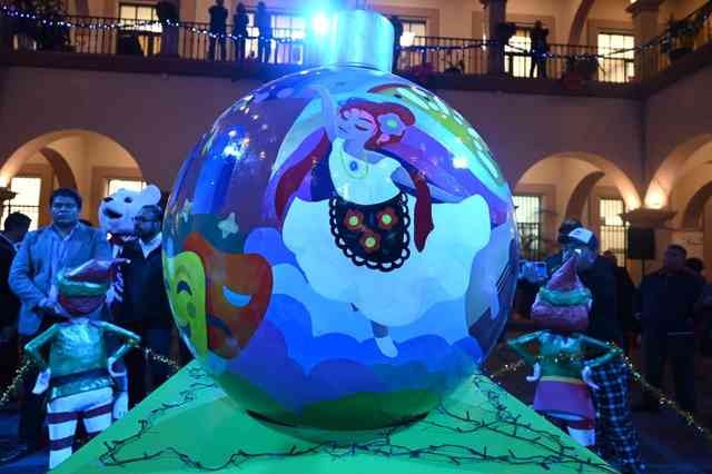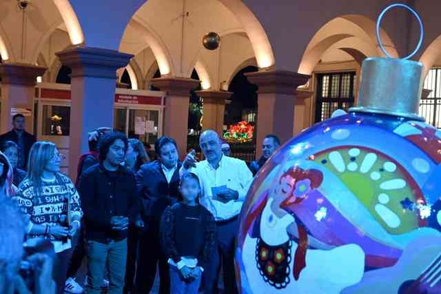 Xalapa, Ver., 28 de noviembre de 2023.- La tarde de este martes, se presentó la esfera navideña que el Ayuntamiento de Xalapa colocará en el desfile de la Caravana Coca-Cola el próximo 6 de diciembre, el decorativo se realizó con la intervención del artista Jesús Saí Nolsco Triana.