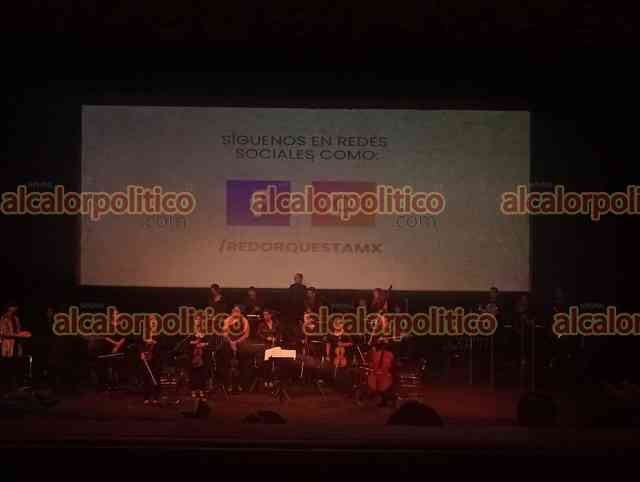 Xalapa, Ver., 28 de noviembre de 2023.- La noche de este martes, en el Teatro del Estado "Ignacio de la Llave" la agrupación Red Orquesta ofreció proyección de la película anime "Your Name", con musicalización en vivo.