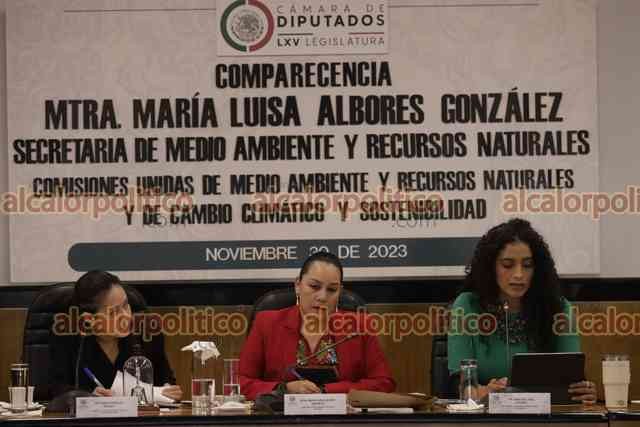 Ciudad de México, 30 de noviembre de 2023.- La secretaria del Medio Ambiente y Recursos Naturales, María Luisa Albores, compareció ante las comisiones unidas de Medio Ambiente y Recursos Naturales, y de Cambio Climático y Sostenibilidad de la Cámara de Diputados.
