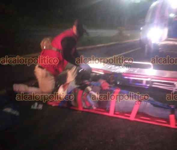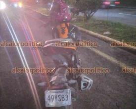 Xalapa, Ver., 1° de diciembre de 2023.- Motociclista resultó lesionado tras ser golpeado por tráiler, en la avenida Lázaro Cárdenas a la altura del distribuidor vial El Trébol. Fue trasladado a un hospital.