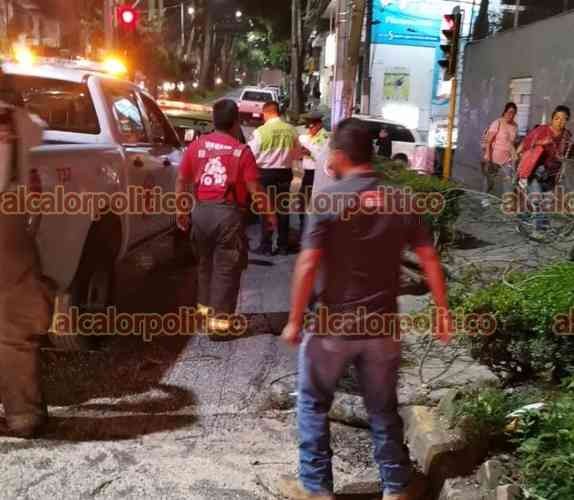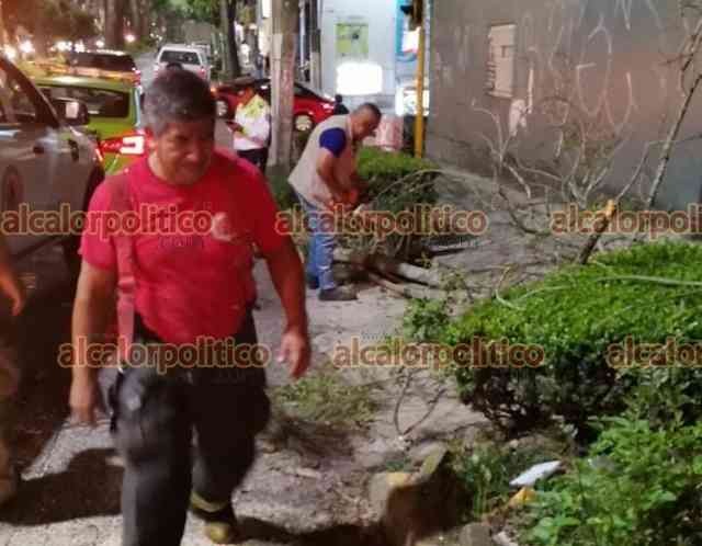 Xalapa, Ver., 1 de diciembre de 2023.- Personal de PC Municipal y Bomberos realizan trabajos de poda de árboles sobre la avenida Américas, esquina avenida Xalapa, personal de Tránsito del Estado abanderó la zona cerrando la circulación para garantizar la seguridad de los trabajadores.