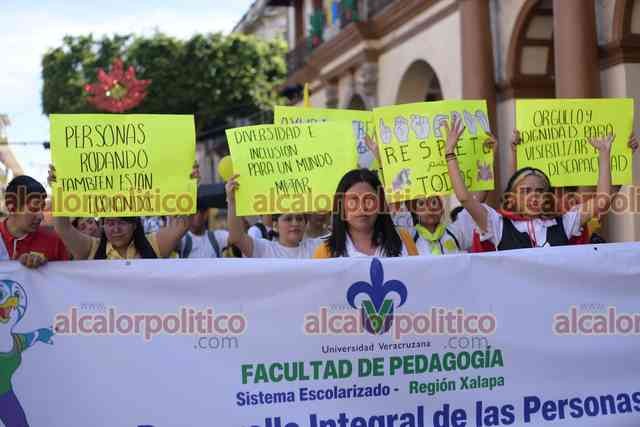 Xalapa, Ver., 2 de diciembre de 2023.- Por el Día Internacional de las Personas con discapacidad, decenas de ciudadanos marcharon en la avenida Ávila Camacho con dirección a Plaza Lerdo.