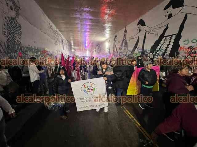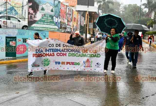 Xalapa, Ver., 4 de diciembre de 2023.- Bajo la lluvia, personas con discapacidad y familiares marcharon por el centro de la Capital para pedir inclusión.