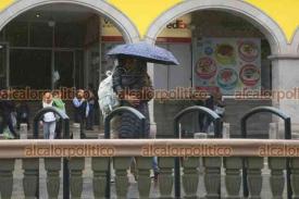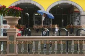 Xalapa, Ver., 5 de diciembre de 2023.- La breve brisa obligó a los xalapeños a sacar el paraguas.