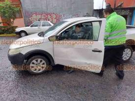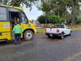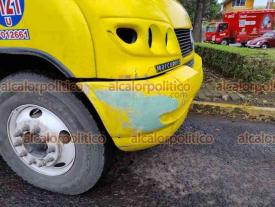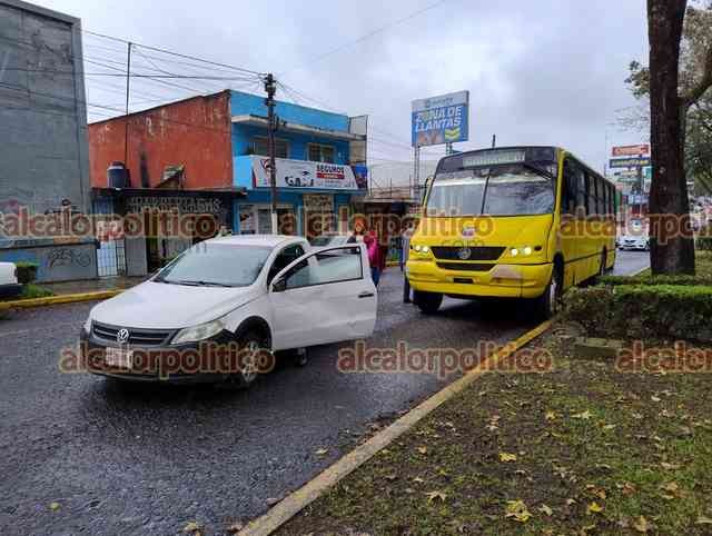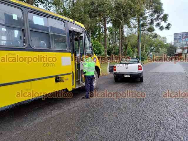 Xalapa, Ver., 6 de diciembre de 2023.- Un camión del transporte público chocó contra el costado de una camioneta que le hizo corte de circulación en la avenida Xalapa, casi esquina Ernesto Ortiz Medina, peritos de Tránsito del Estado tomaron conocimiento del percance en donde no hubo lesionados.