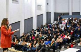 Naucalpan de Juárez, Estado de México, 5 de diciembre de 2023.- La diputada Anilú Ingram Vallines explicó la importancia de la Ley Monse a representantes de la sociedad civil, especialistas, empresarias, estudiantes y medios de comunicación.