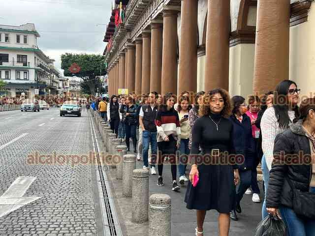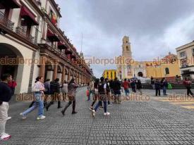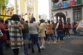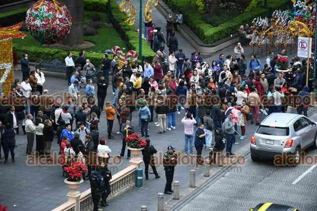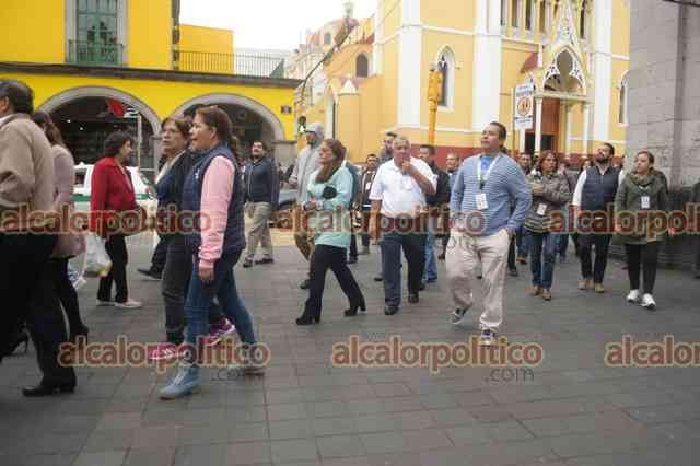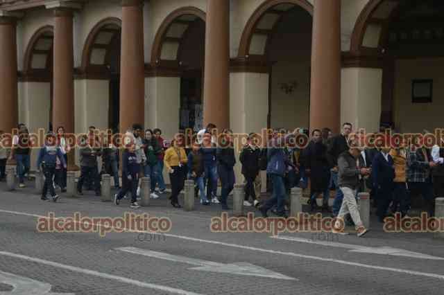 Xalapa, Ver., 7 de diciembre de 2023.- Trabajadores de Gobierno evacuaron sus oficinas ante el sismo percibido la tarde de este jueves.