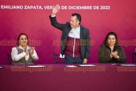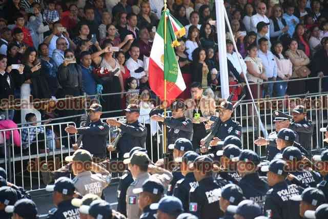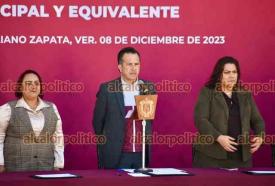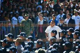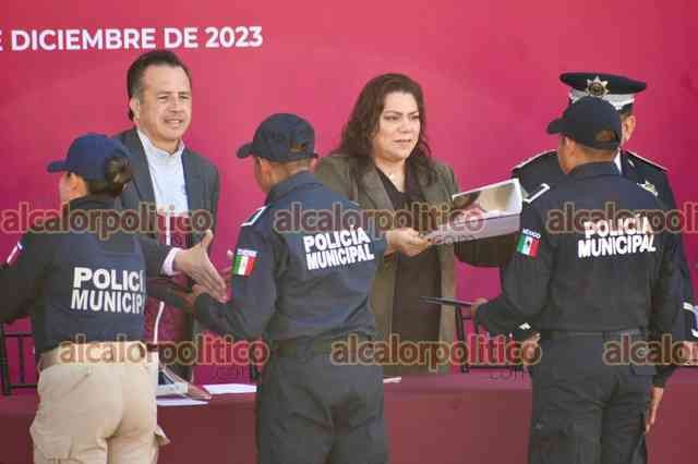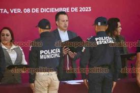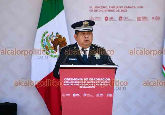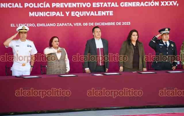 El Lencero, Ver., 8 de diciembre de 2023.- Junto a la presidenta del Poder Legislativo, Esther Martínez, y del Judicial, LisbethJiménez, el gobernador Cuitláhuac García Jiménez encabezó la “Ceremonia de Graduación Formación Inicial Policía Preventivo Estatal Generación XXXV, Municipal y equivalente”.
