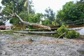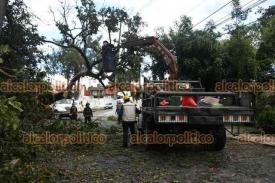 Xalapa, Ver., 10 de diciembre de 2023.- Vientos por el paso del Frente Frío 16 tiraron un árbol de Tulipán del Vivero Municipal en la calle Obrero Mundial, colonia Obrero Campesina; de inmediato llegaron brigadas de trabajadores a retirarlo lo antes posible.