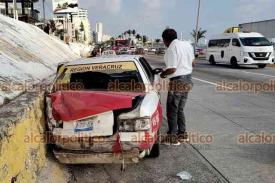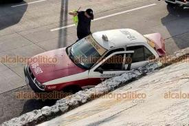 Boca del Río, Ver., 24 de febrero de 2024.- Tras chocar contra taxi, auto terminó volcado en el bulevar Miguel Alemán, en el Infonavit El Morro. Vecinos y otros conductores ayudaron a los ocupantes de ambos vehículos; 2 pasajeras del auto del alquiler resultaron lesionadas.