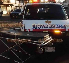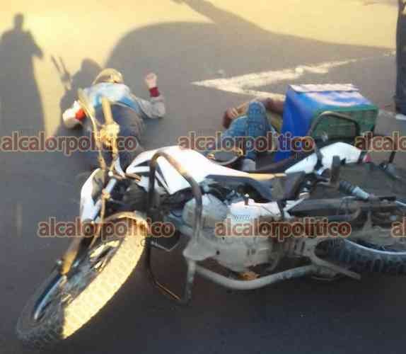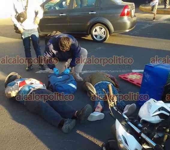 Xalapa, Ver., 27 de febrero de 2024.- Una pareja que iba en motocicleta chocó contra un vehículo que les hizo corte de circulación en la avenida México, a la altura del puente Macuiltépetl. Paramédicos los trasladaron a un hospital.