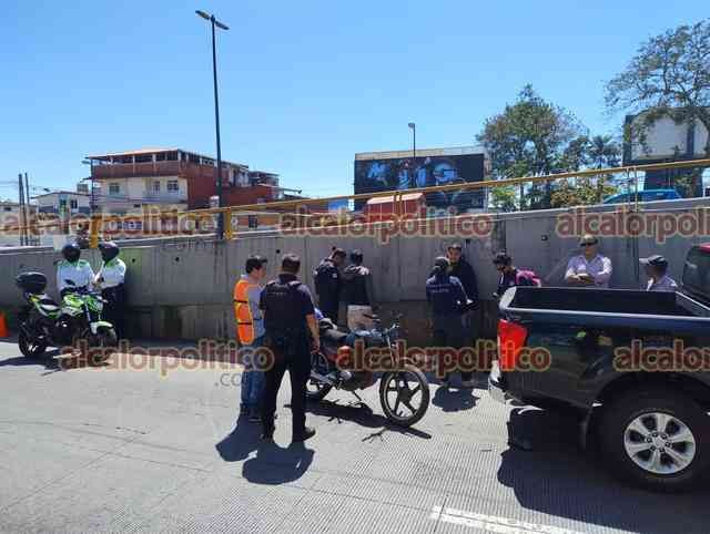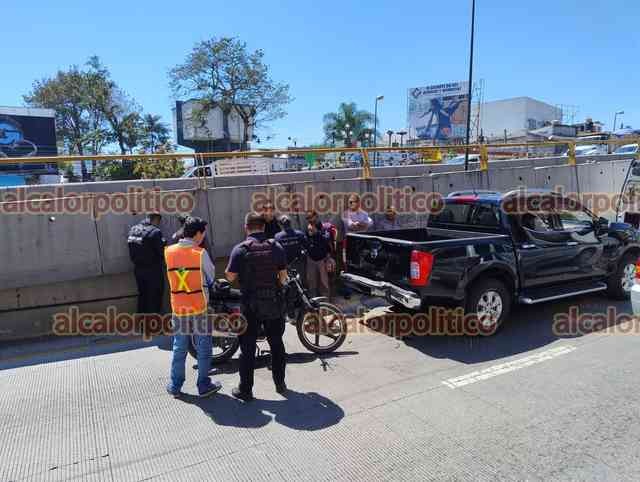 Xalapa, Ver., 27 de febrero de 2024.- Un motociclista chocó por alcance contra una camioneta en la avenida Lázaro Cárdenas, en la lateral del puente Bicentenario. No requirió ser llevado a un hospital. Elementos de Tránsito tomaron conocimiento del percance.