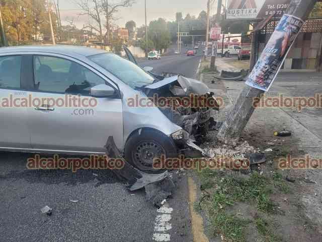 Xalapa, Ver., 5 de marzo de 2024.- Auto se impactó contra poste en el bulevar Xalapa-Banderilla, a la altura de la calle Guadalupe Victoria. Al parecer, el percance se debió a que el conductor se quedó dormido al manejar. No hubo lesionados de gravedad.