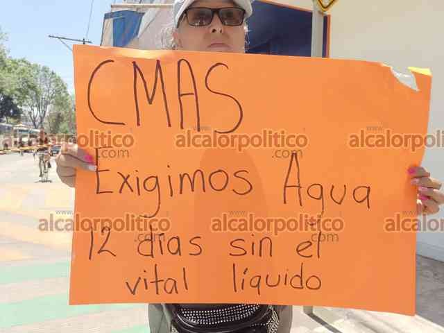 Xalapa, Ver., 13 de abril de 2024.- Vecinos de la colonia Obrero Campesina bloquearon la circulación en la avenida Adolfo Ruiz Cortines esquina con Francisco Vázquez, en protesta porque llevan 12 días sin agua.