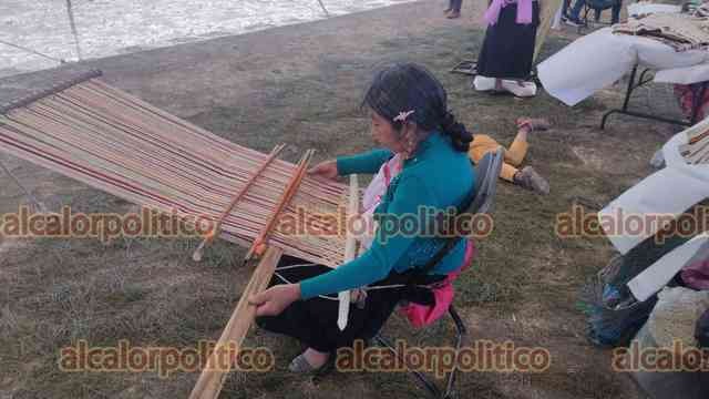 Soledad Atzompa, Ver., 13 de abril de 2024.- La segunda edición de la Cumbre Nahua inició este sábado en la localidad Las Porfiadas; artesanos ofrecen una amplia variedad de productos como cotones, guantes, bufandas, gorros, artículos de madera, objetos de barro, entre otros.