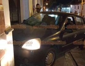 Xalapa, Ver., 15 de abril de 2024.- Vehículo particular chocó contra la fachada de vivienda en la calle Vicente Guerrero, zona Centro; dañó el portón del domicilio pero no hubo lesionados. El responsable se retiró antes de que arribaran autoridades.