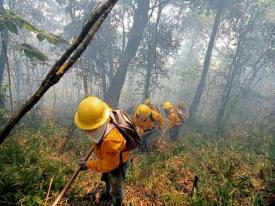 Río Blanco, Ver., 16 de abril de 2024.- Hasta las 17:00 horas de este martes, autoridades reportaban 70% de control y 50% de liquidación en el incendio del paraje Ocozotitla del predio Tenango, “sin cambios en la superficie afectada gracias a la contención del fuego con trincheras y brechas”. Con vuelo de reconocimiento alistan operaciones de combate aéreo.