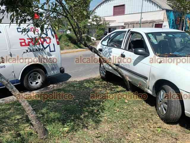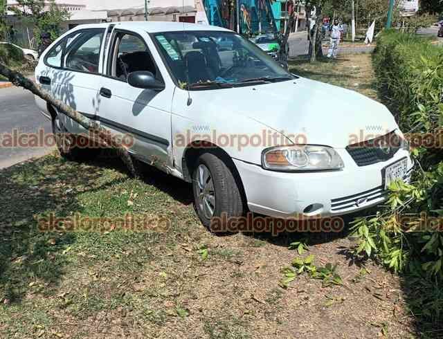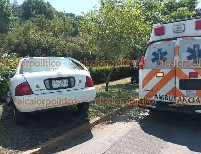 Xalapa, Ver., 17 de abril de 2024.- Auto terminó sobre el camellón central del bulevar Diamante, en la unidad habitacional FOVISSSTE, luego de que su conductor perdiera el control. Paramédicos de Código Bravo le brindaron los primeros auxilios pero no necesitó hospitalización.