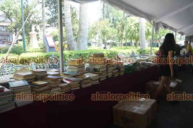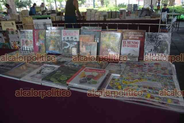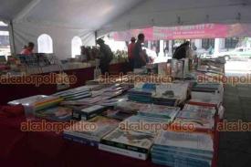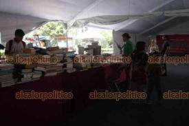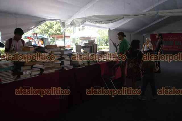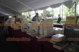 Xalapa, Ver., 18 de abril de 2024.- En el parque Juárez ya se instaló la carpa y algunos estantes con artículos para la XVIII Feria del Libro que se inaugurará este viernes.