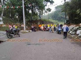 Coetzala, Ver., 22 de abril de 2024.- Grupo de personas de la comunidad Coetzapotitla, en protesta por la falta de agua, bloqueó accesos a la cabecera municipal, lo que causó inconformidad pues impidió el paso a personas que se dirigían a sus trabajos o escuela.