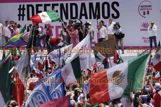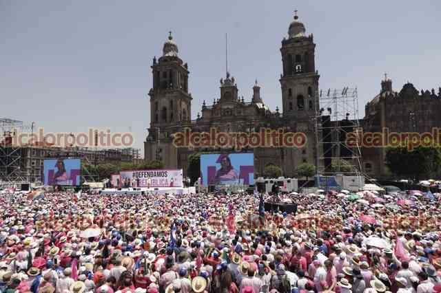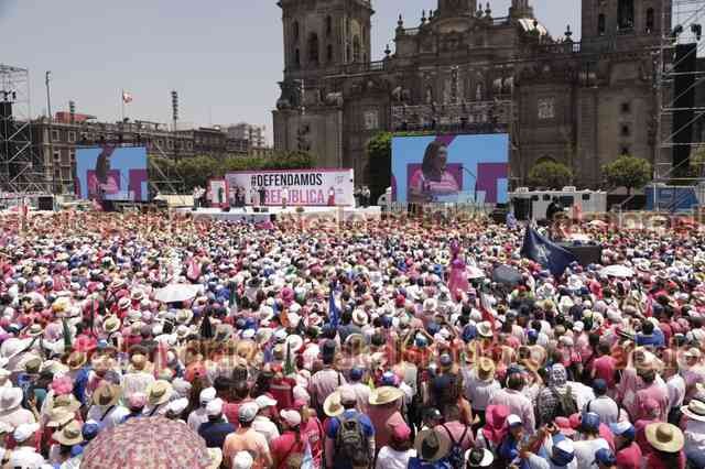 Ciudad de México, 19 de mayo de 2024.- Miles de personas en el Zócalo en apoyo a la Marea Rosa y a la candidata presidencial por Fuerza y Corazón por México, Xóchitl Gálvez.
