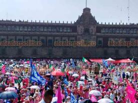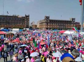 Miles de personas en el Zócalo en apoyo a la Marea Rosa