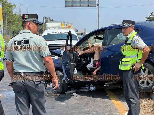 Veracruz, Ver., 20 de mayo de 2024.- Conductora, al parecer ebria, perdió el control en la carretera Veracruz-Xalapa; se subió al camellón y chocó contra camión que se retiró del lugar. Resultó con heridas pero se negó a recibir atención de los paramédicos. Guardia Nacional se ocupó del percance.