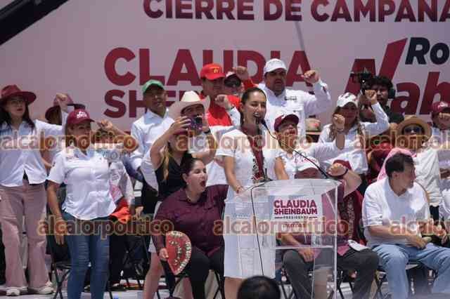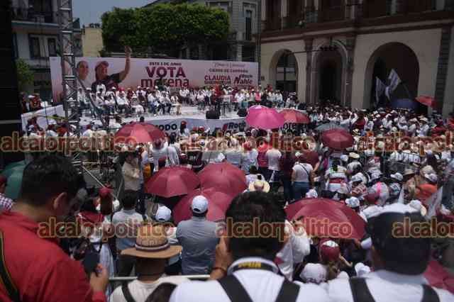 Xalapa, Ver., 25 de mayo de 2024.- La candidata de MORENA a la presidencia de la República, Claudia Sheinbaum, cerró campaña en Veracruz junto con Rocío Nahle por la gubernatura, ante miles de simpatizantes que llegaron de todas las regiones del Estado, con vistas a la elección del ya cercano domingo 2 de junio.
