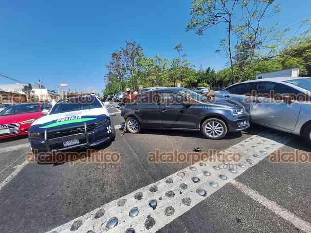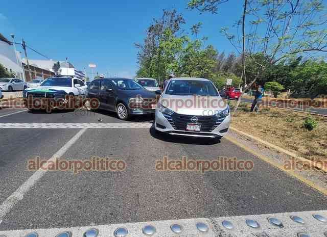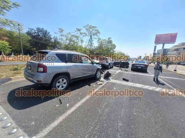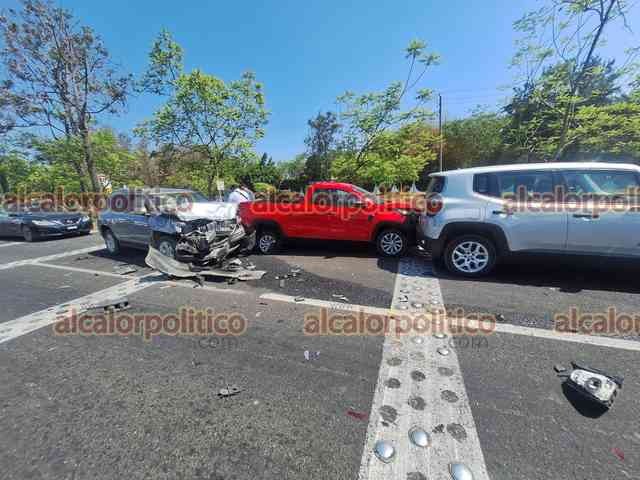 Emiliano Zapata, Ver., 27 de mayo de 2024.- Choque múltiple ocurrió en la carretera Xalapa-Veracruz, a la altura del Campo Militar; elementos de la Policía Vial acudieron para auxiliar a los ocupantes de los vehículos involucrados; se reportó un lesionado.