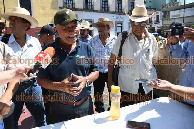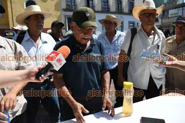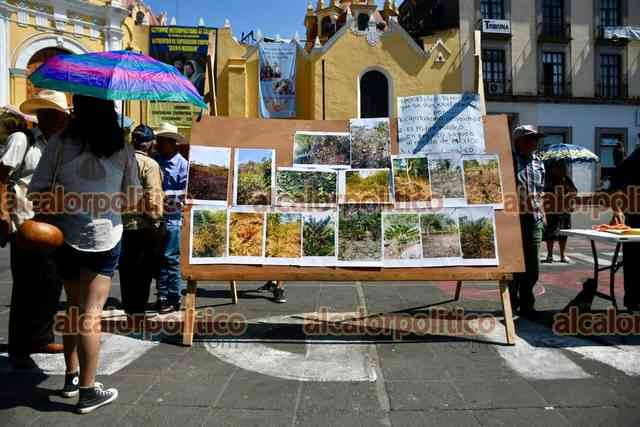Xalapa, Ver., 27 de mayo de 2024.- Integrantes del Consejo Regional del Café de Coatepec se plantaron en Plaza Lerdo, donde lamentaron la crítica situación que viven tras 45 días de sequía.