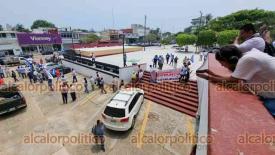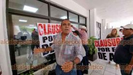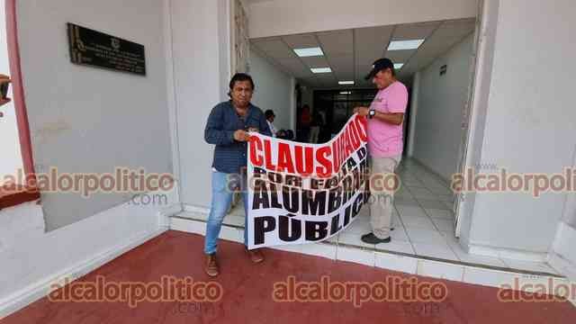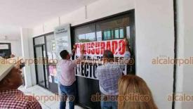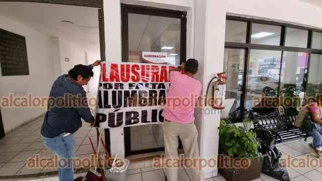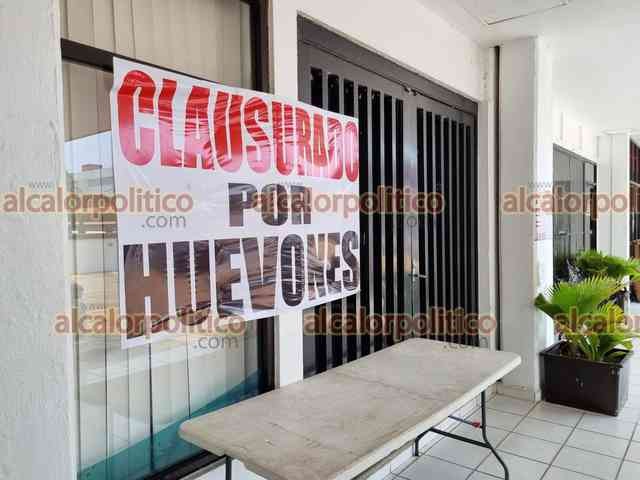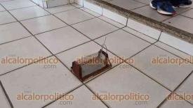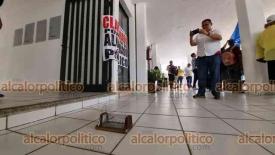 Coatzacoalcos, Ver., 29 de mayo de 2024.- Hasta una ratonera colocaron en bajos del Palacio Municipal al clausurarlo de manera simbólica.