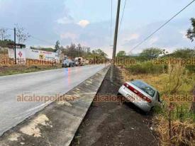 Emiliano Zapata, Ver., 10 de junio de 2024.- Conductor de auto perdió el control en la carretera Las Trancas-Coatepec, a la altura de El Alcanfor, por lo que terminó fuera de la carpeta de rodamiento. Sus ocupantes, 2 adultos y 2 menores, resultaron ilesos.